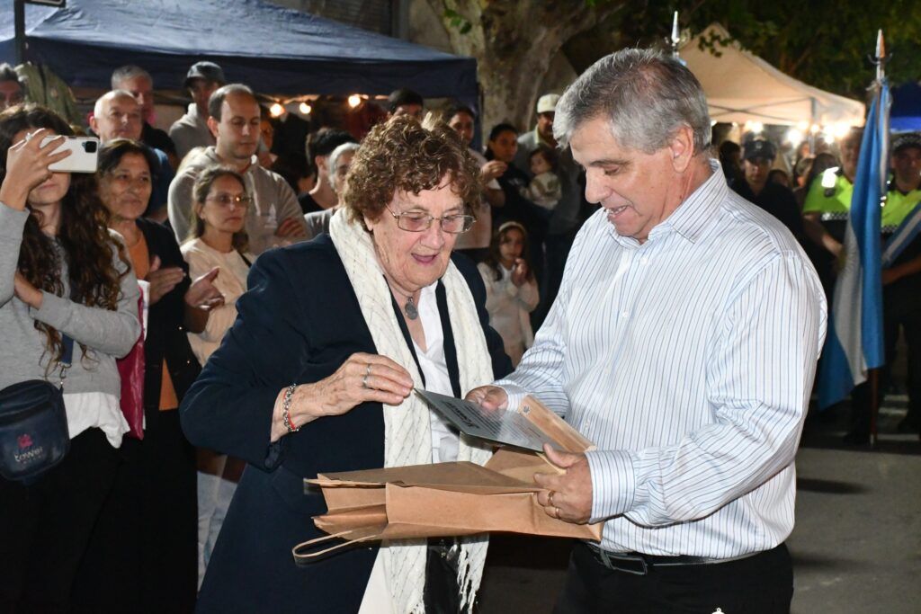 La vecina María Juana Brochetti fue distinguida por el intendente, en reconocimiento a su trayectoria y servicio a la comunidad. Recibió un presente en nombre del gobierno municipal.